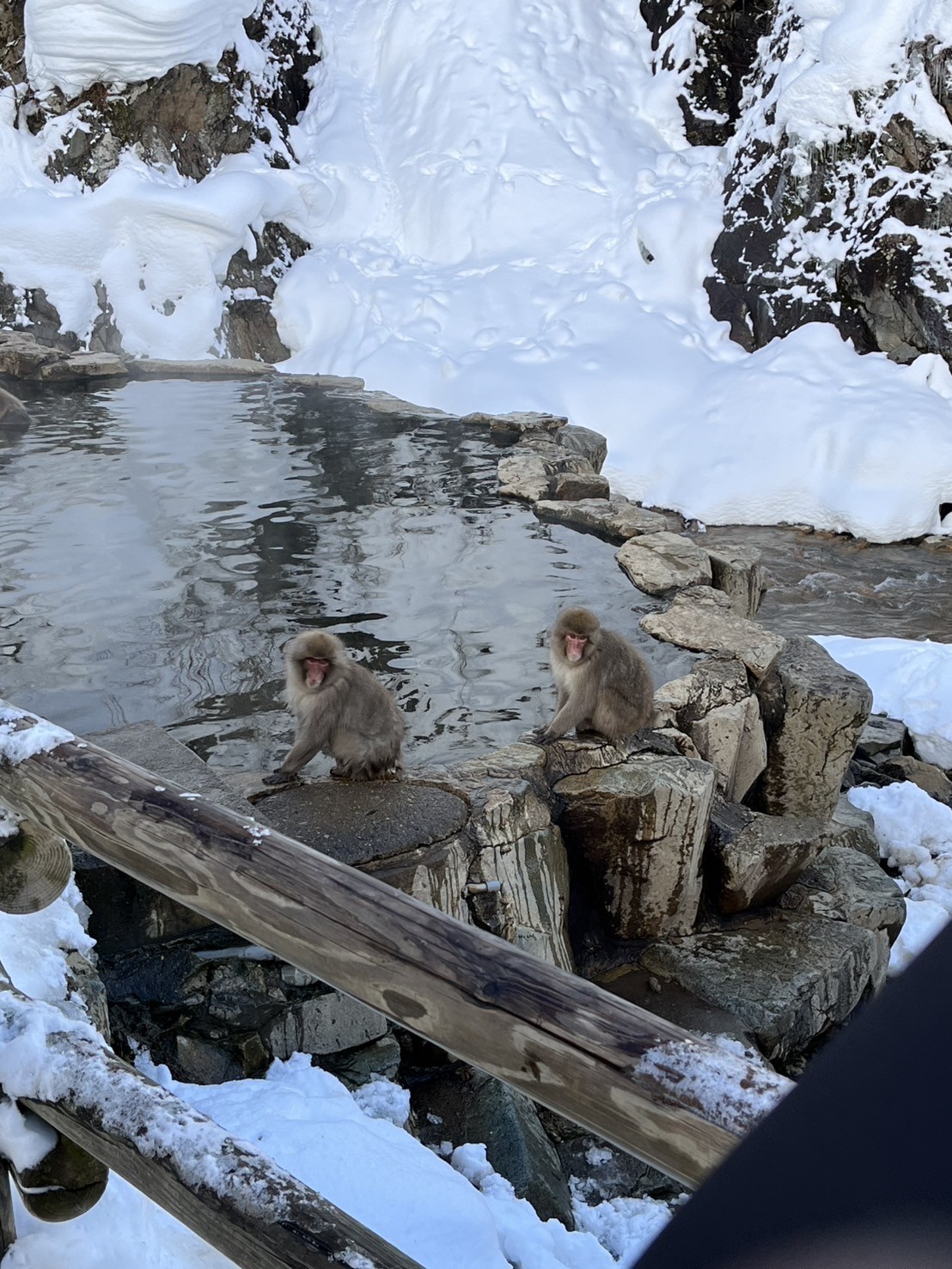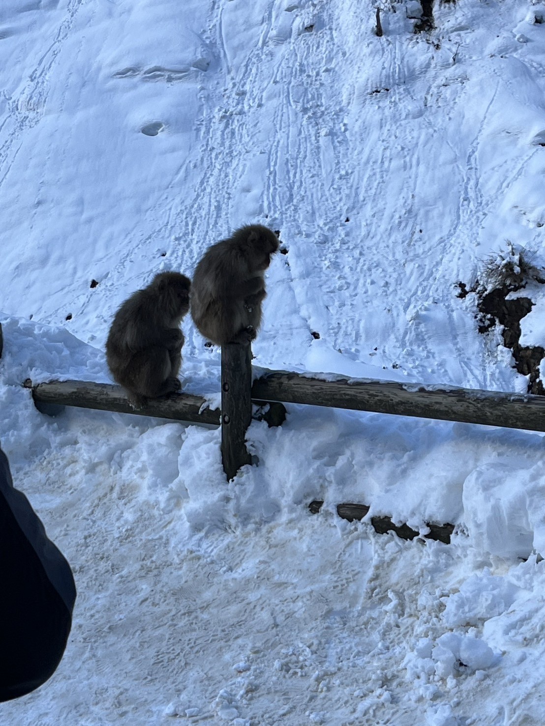 見学組は午後に野猿公苑に行きました。幸運にも猿に会えました。