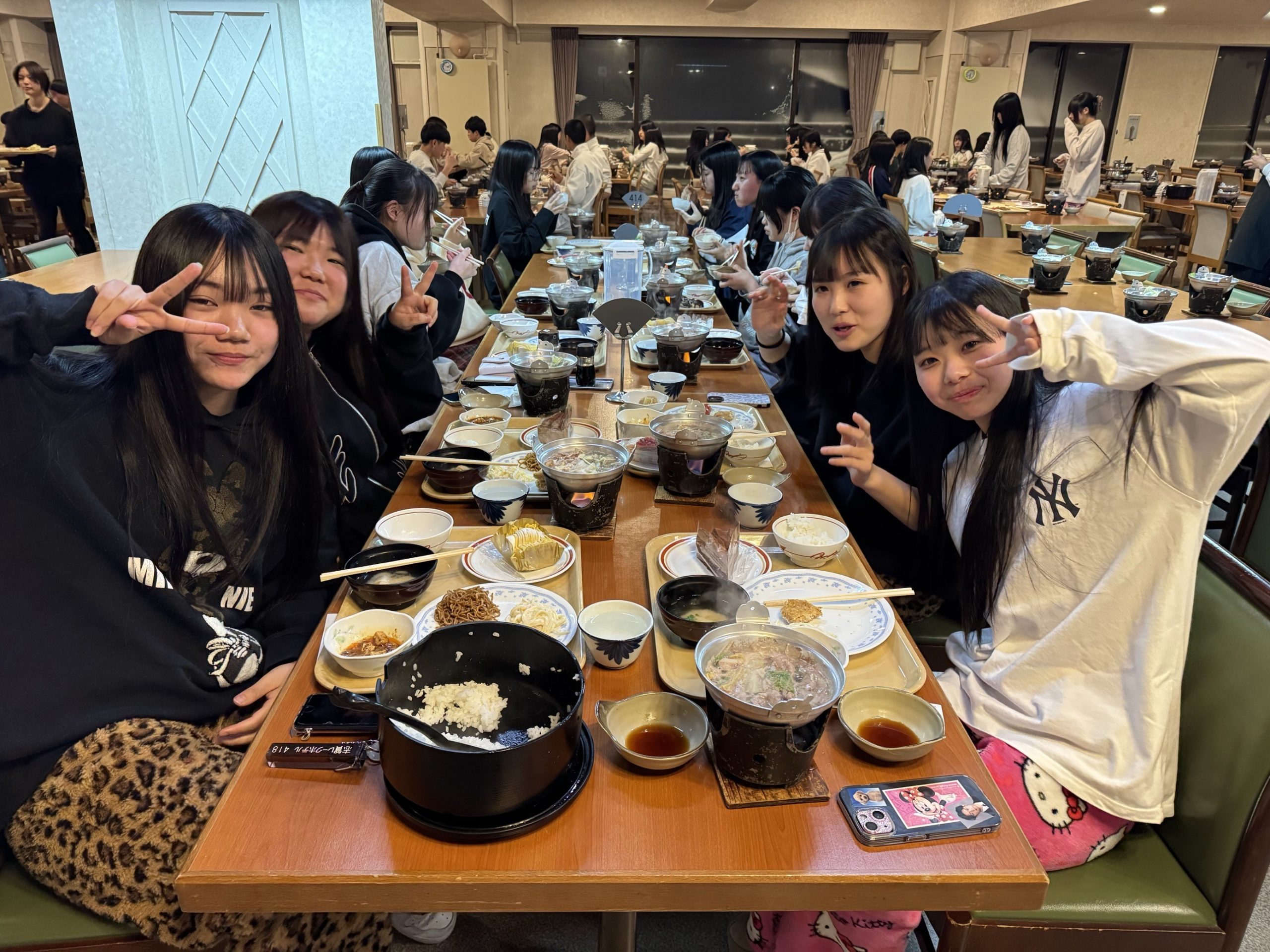 牛しゃぶ鍋とバイキングにケーキもついていて、生徒たちは大満足の様子。