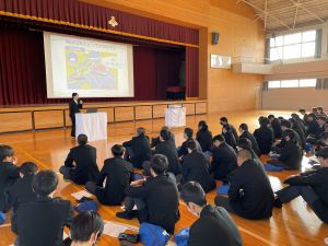 今治造船株式会社広島工場から2名の講師をお招きし、1・2年生創学コースの生徒を対象とした企業講話を開催しました。