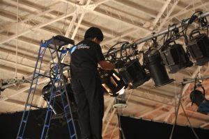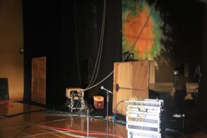 朝早くから、体育館は劇団の熱気に包まれました。 まず、体育館の床に、舞台となる大掛かりなセットが次々と運び込まれ、組み立てられます。普段は体育の授業等で利用する空間が、一瞬にして、19世紀のアラバマ州にあるケラー家の邸宅へと変貌していく様子は、まるで魔法のようでした。