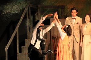迫真の演技、特に言葉を持たないヘレンが、サリバン先生との激しい格闘の末に「W-A-T-E-R(水)」の概念を理解し、言葉と世界との繋がりを発見するクライマックスのシーンでは、体育館全体が息をのむ緊張感に包まれました。水が流れる演出のリアリティ、そして役者たちの魂の叫びが、音響設備を通じて体育館の隅々まで響き渡り、生徒たちは舞台に釘付けとなりました。