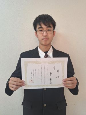 11月1日(土)に「第9回平和の島スピーチコンテスト~山口県内の中高生によるいのちのいのり~」が周南総合庁舎2階さくらホールにて行われ、2年生の藤井龍平が特選を受賞しました。