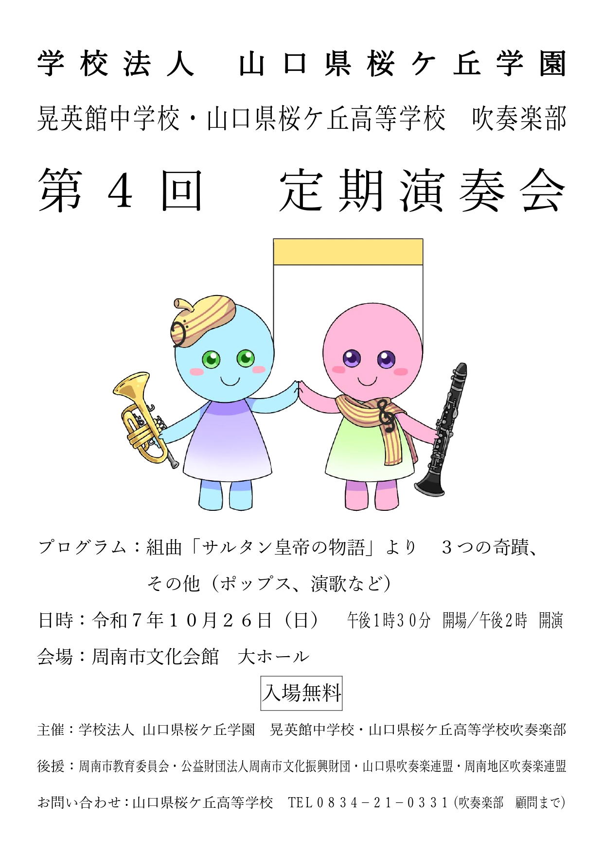 この度、吹奏楽部が定期演奏会を開催いたします。